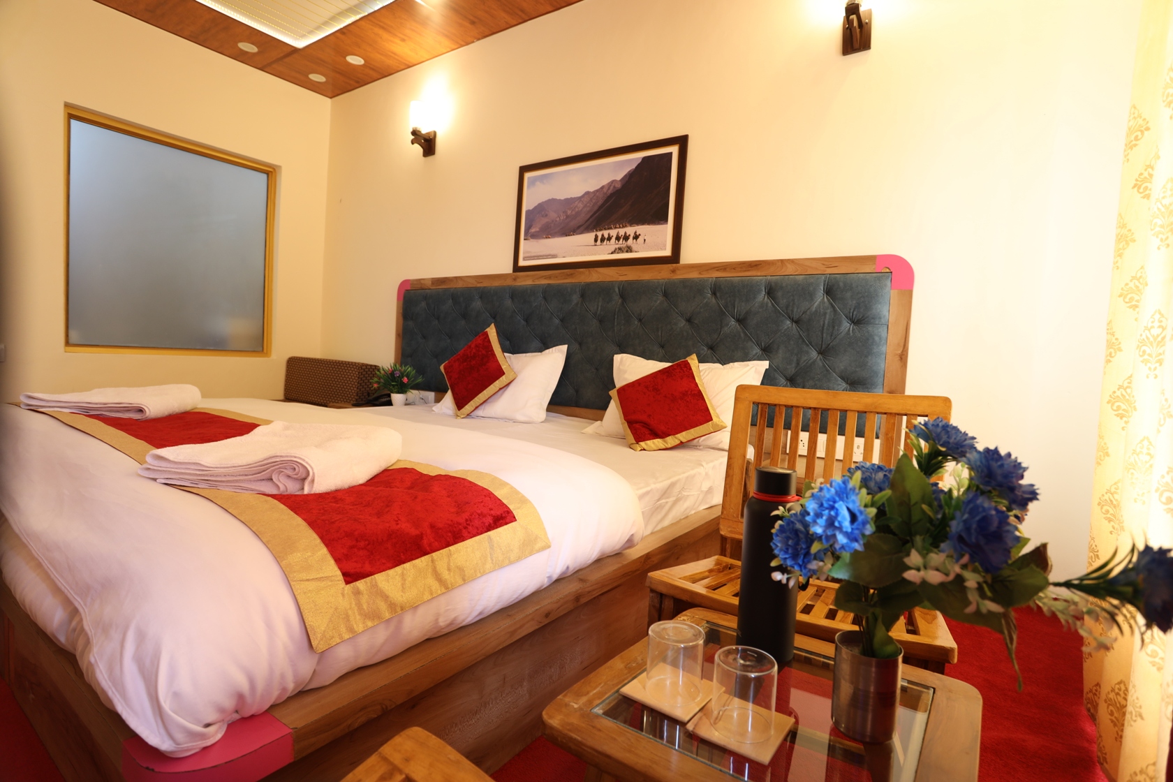 Experience ultimate comfort in our premium accommodations featuring traditional Ladakhi design with modern luxury amenities.